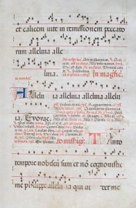 Il cardinale Branda era accanto a papa Eugenio IV a Firenze quando fu consacrata la nuova cattedrale di Firenze, completata dalla cupola di Brunelleschi: era il 25 marzo 1436 e per la prima volta in Santa Maria del Fiore fu eseguito il mottetto Nuper rosarum flores, poi diventato celebre, composto per l’occasione da Guillaume Dufay. Non abbiamo notizia di particolari brani suonati per la consacrazione della Collegiata, il 25 marzo 1425, ma probabilmente nella celebrazione non saranno mancati i canti ambrosiani, come quelli che, ancora oggi, possono essere ammirati, scritti nei codici esposti in Museo: grandi manoscritti in pergamena, impreziositi da miniature, scampati all’incendio che distrusse la biblioteca a fine Settecento, proprio perché utilizzati per la liturgia in Collegiata.